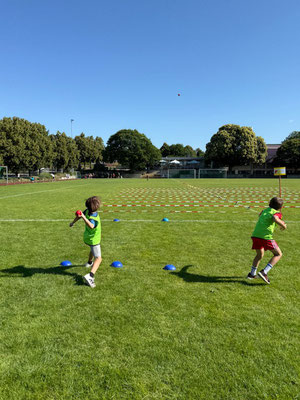 Den Abschluss bildete ein kurzes Spiel in Kleingruppen, bei dem der Ball nach mehrmaligem Abspielen im gegnerischen Raum abgelegt werden musste.